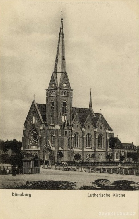 Luterāņu draudze Daugavpilī izveidojās jau pēc reformācijas, bet līdz pat 19. gadsimtam luterticīgajiem pilsētā nebija pastāvīgas pulcēšanās vietas – luterāņu diasporu apkalpoja piepilsētas draudžu mācītāji. Laika gaitā luterticīgo skaits pilsētā palielinājās – tie galvenokārt bija vācu amatnieki, cietokšņa garnizona virsnieki, kā arī pilsētas iedzīvotāji. Saglabājušās liecības, ka 1834. gadā Krievijas cara Nikolaja I Daugavpils apmeklējuma laikā, cimdu meistars Gotfrīds Dibels iesniedzis caram lūgumu atļaut dibināt luterāņu draudzi un saņēmis ķeizariskās augstības piekrišanu. Par draudzes dibināšanas datumu tiek uzskatīts 1835. gada 22. jūlijs, un draudzes pirmais mācītājs bijis K.J. Fukss. Tā bija vāciska luterāņu draudze. Tajā pašā gadā Krievijas caram Nikolajam tika iesniegts lūgums atļaut pilsētā celt luterāņu dievnamu. Pēc atļaujas piešķiršanas dievkalpojumiem tika pielāgota kāda Daugavpils cietokšņa teritorijā esoša ēka. Ar laiku dievkalpojuma telpas cietoksnī kļuva par šaurām, un 1868. gadā tika uzcelts jauns koka dievnams, pie kura tika piebūvēta arī skolas telpa. Nav zināms, kādi apstākļi draudzei neļāva realizēt akadēmiķa Franča Šustera 1863. gadā izstrādāto mūra baznīcas projektu.